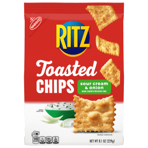 RITZ Toasted Chips Sour Cream and Onion Crackers, Party Snacks, 8.1 oz