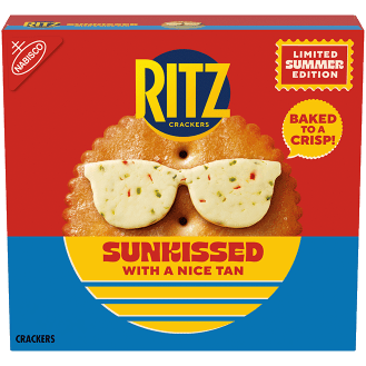 RITZ Limited Edition Sunkissed Crackers are the Ritz Original cracker you know and love, now baked to a crisp with a nice tan. Golden crackers with a delightful crisp, these RITZ Crackers provide a creative canvas for a variety of toppings. Spice up your picnic or barbecue by topping these snack crackers with pulled pork, coleslaw, and a jalapeno slice. Or add these buttery crackers for cheese platters to a charcuterie board with soft and hard cheeses, fresh fruit, and guacamole. Whether it’s a formal event or a casual get-together with friends, RITZ is a rich, buttery cracker that invites sharing because it welcomes every person, flavor and pairing, making these tasty golden crackers a fantastic snack food or appetizer for any occasion. So keep these delicious and buttery RITZ crackers on hand for anytime you're in the mood for salty snacks. Each box contains individually wrapped sleeves of crackers to lock in freshness and flavor. Golden summer means more sun-kissed fun; see packaging for sweepstakes details.